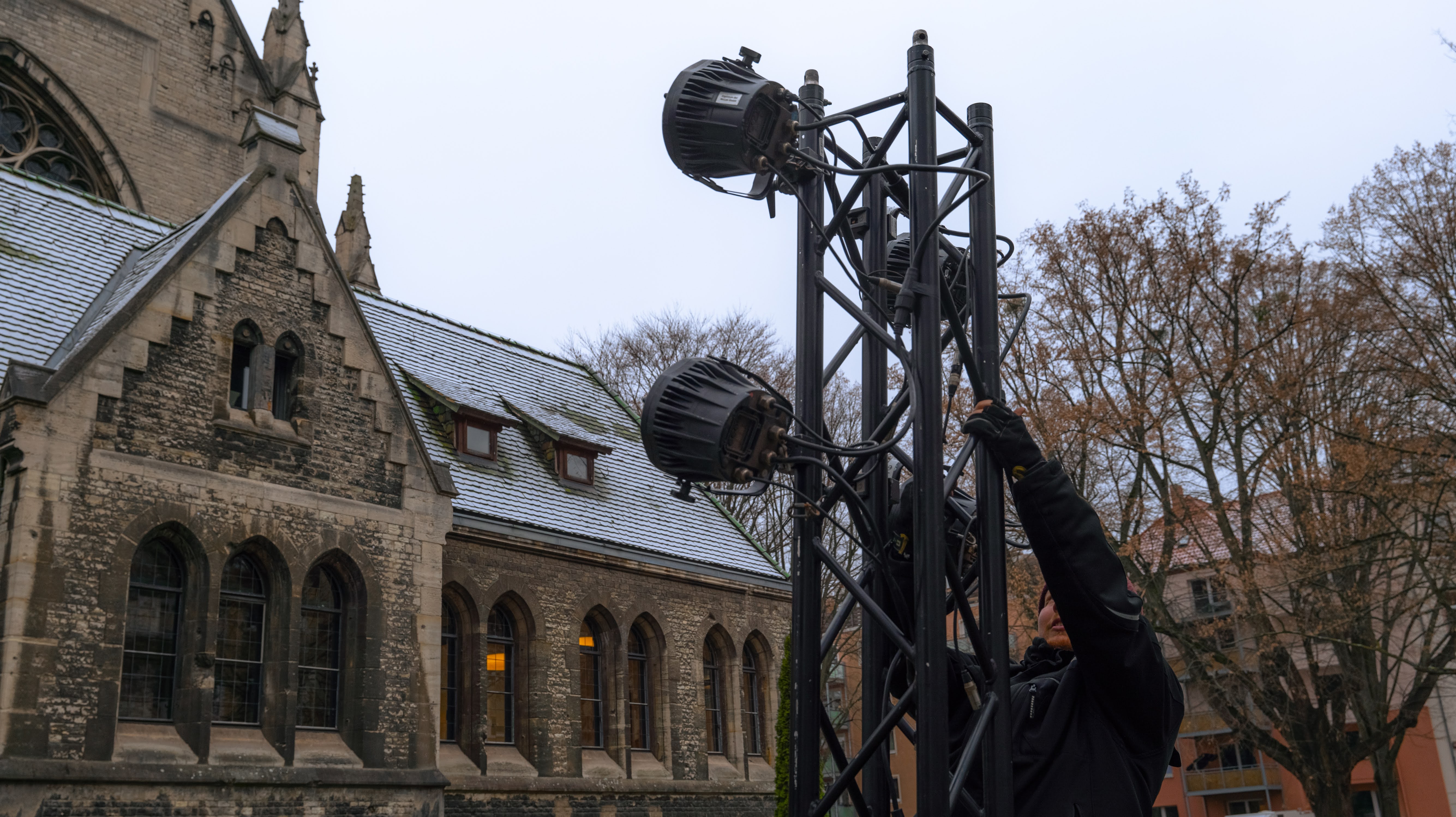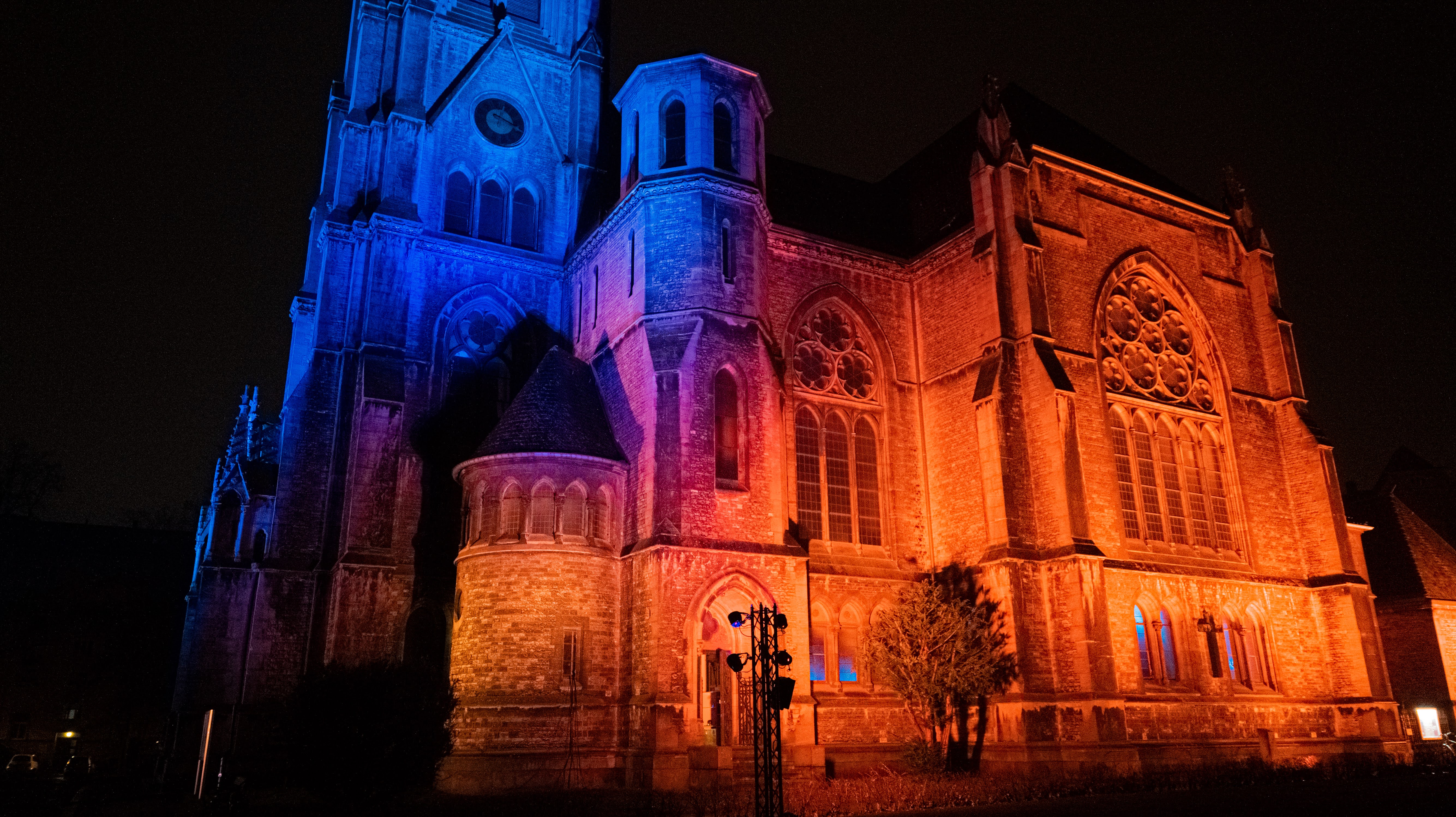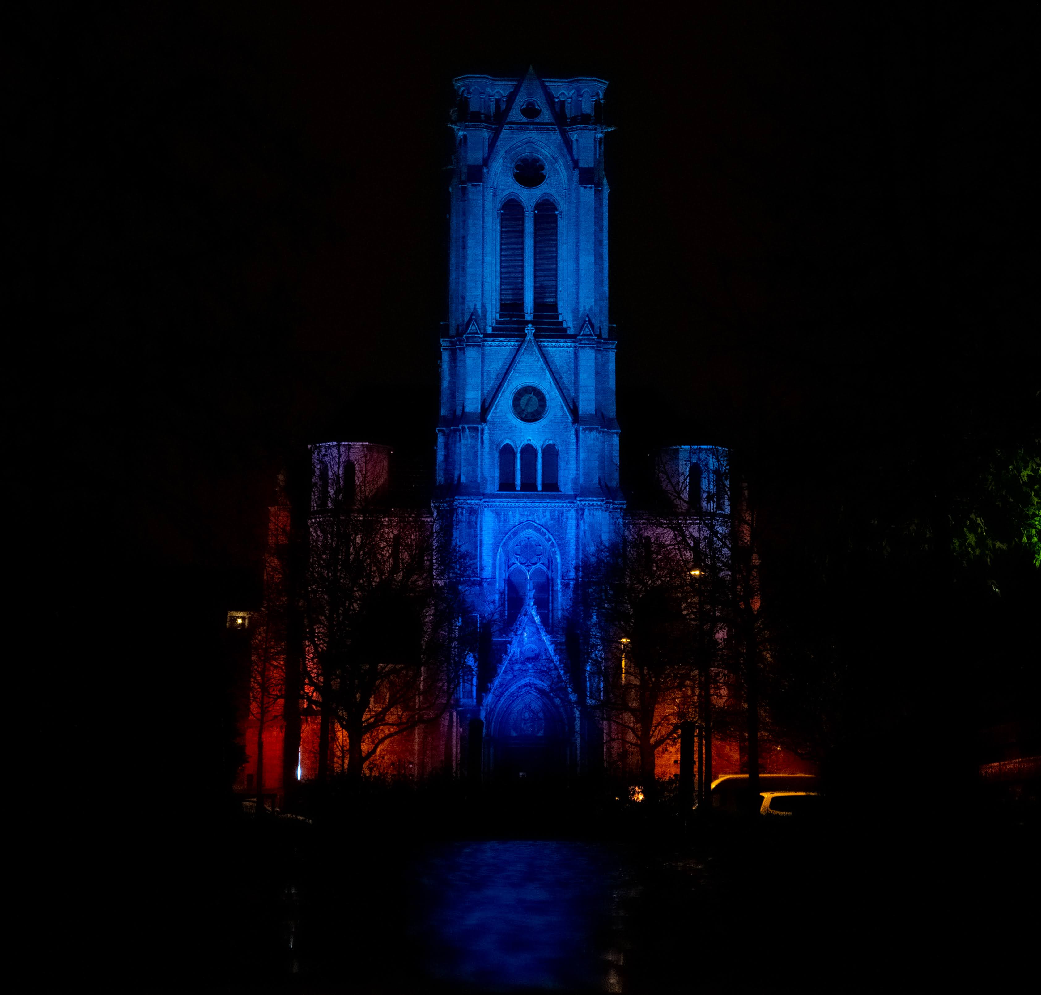 Auch dieses Jahr beleuchteten wir die St. Paulikirche, sowie die umliegenden Bäume und brachten etwas Farbe in die sonst triste Jahreszeit.