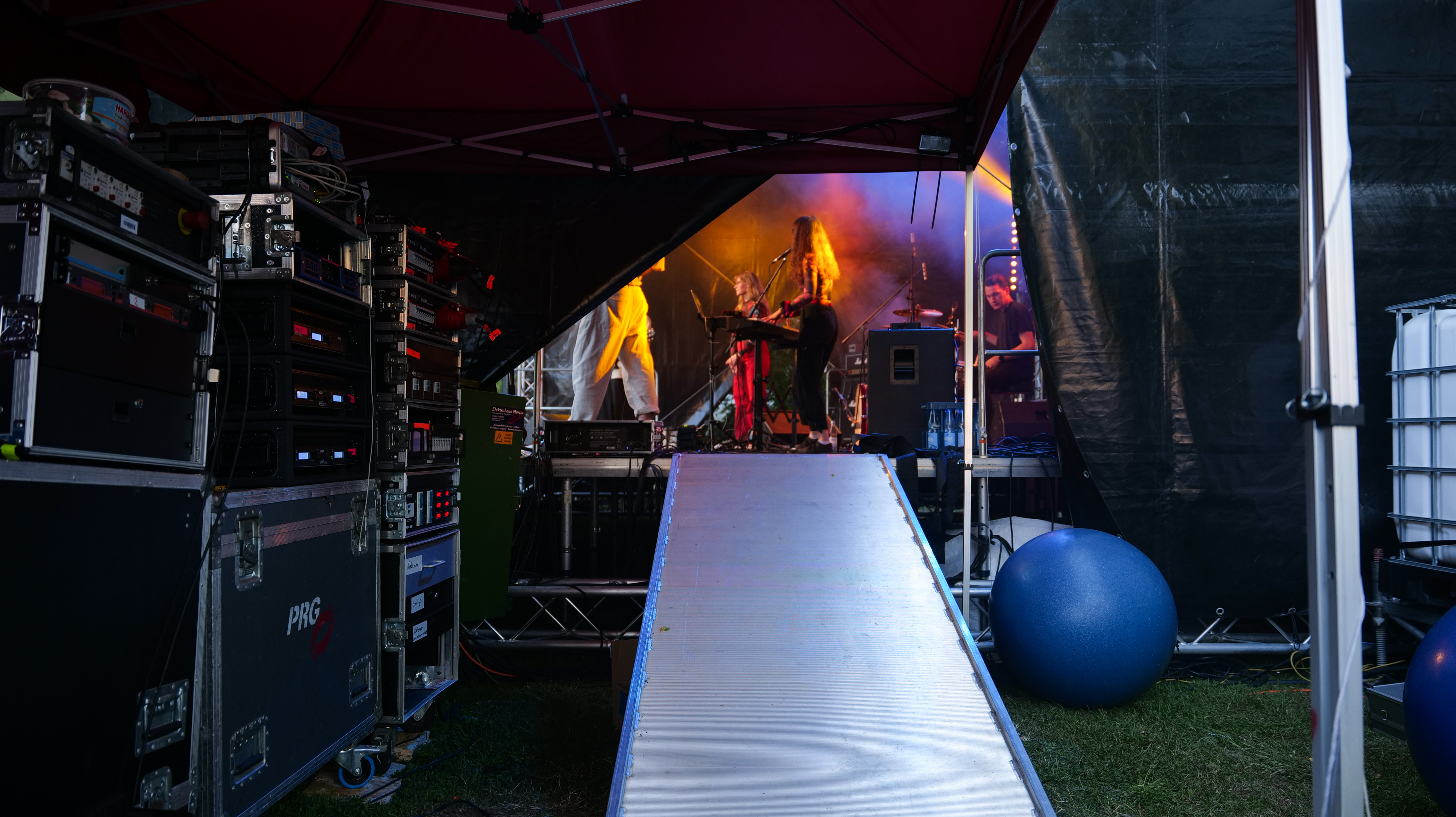 RGB stellte neben Ton- und Lichttechnik ebenfalls eine 8x6m überdachte Bühne der Firma Prolyte, sodass die Luftartisten auch bei schlechtem Wetter im trockenen auftreten konnten.