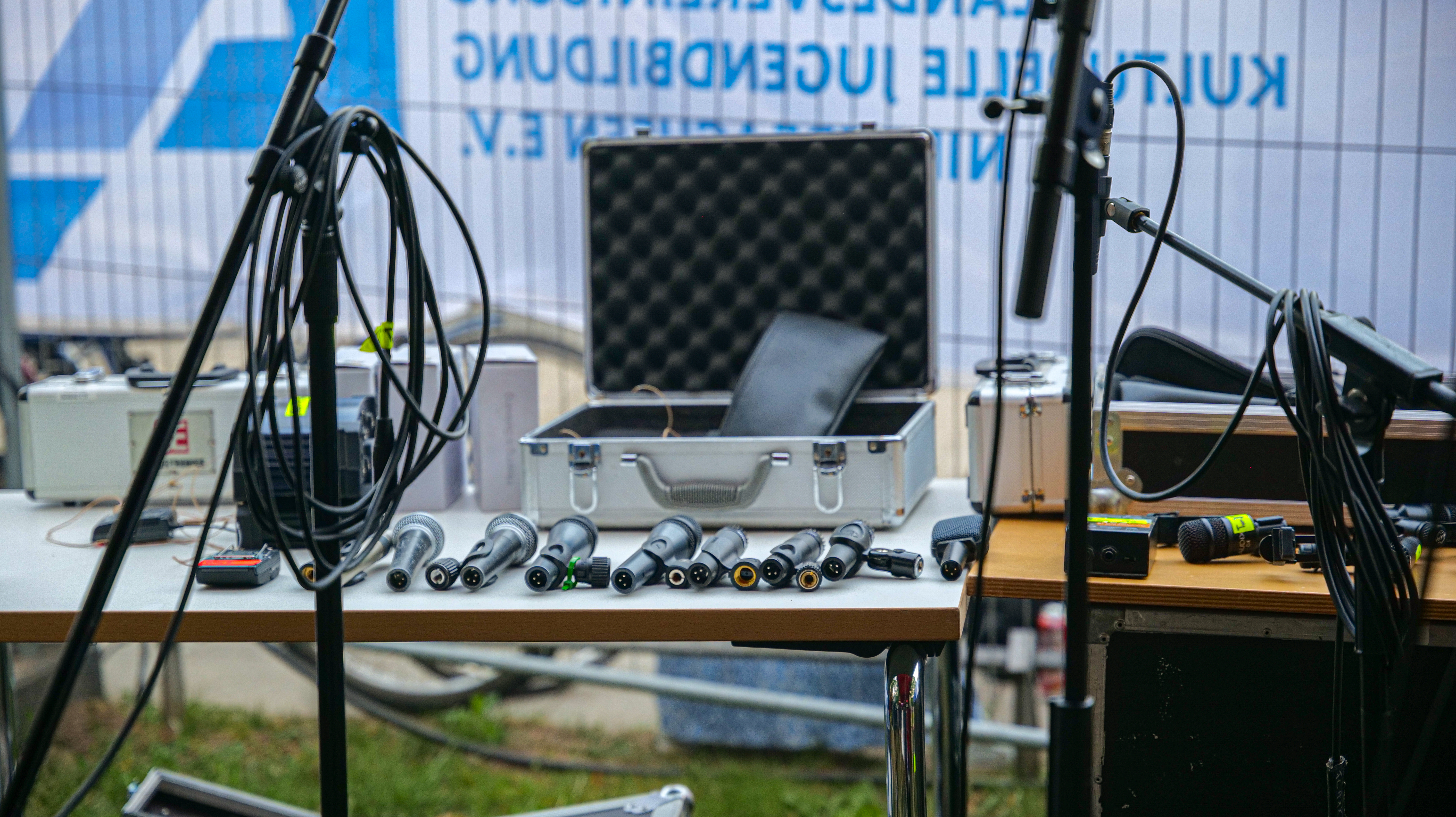 Insgesamt wurden 17 Lautsprecher der Marken Voice Acoustic, Kling & Freitag, sowie Martin Audio verbaut. Über 40 Scheinwerfer und 2 Nebelmaschinen setzten die Bühne auch bei Tageslicht in die richtige Stimmung.